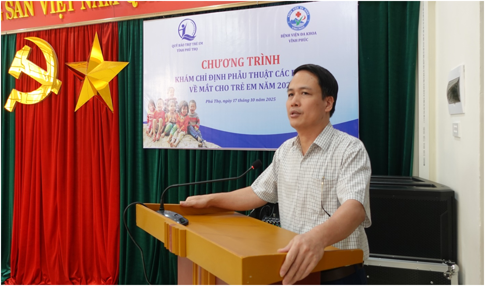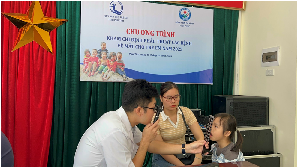 Sáng ngày 17/10/2025, Quỹ Bảo trợ trẻ em tỉnh Phú Thọ phối hợp với Khoa mắt Bệnh viện Đa khoa Vĩnh Phúc tổ chức chương trình khám chỉ định phẫu thuật các bệnh về mắt cho cho trẻ em tỉnh Phú Thọ (khu vực Vĩnh Phúc cũ) năm 2025.