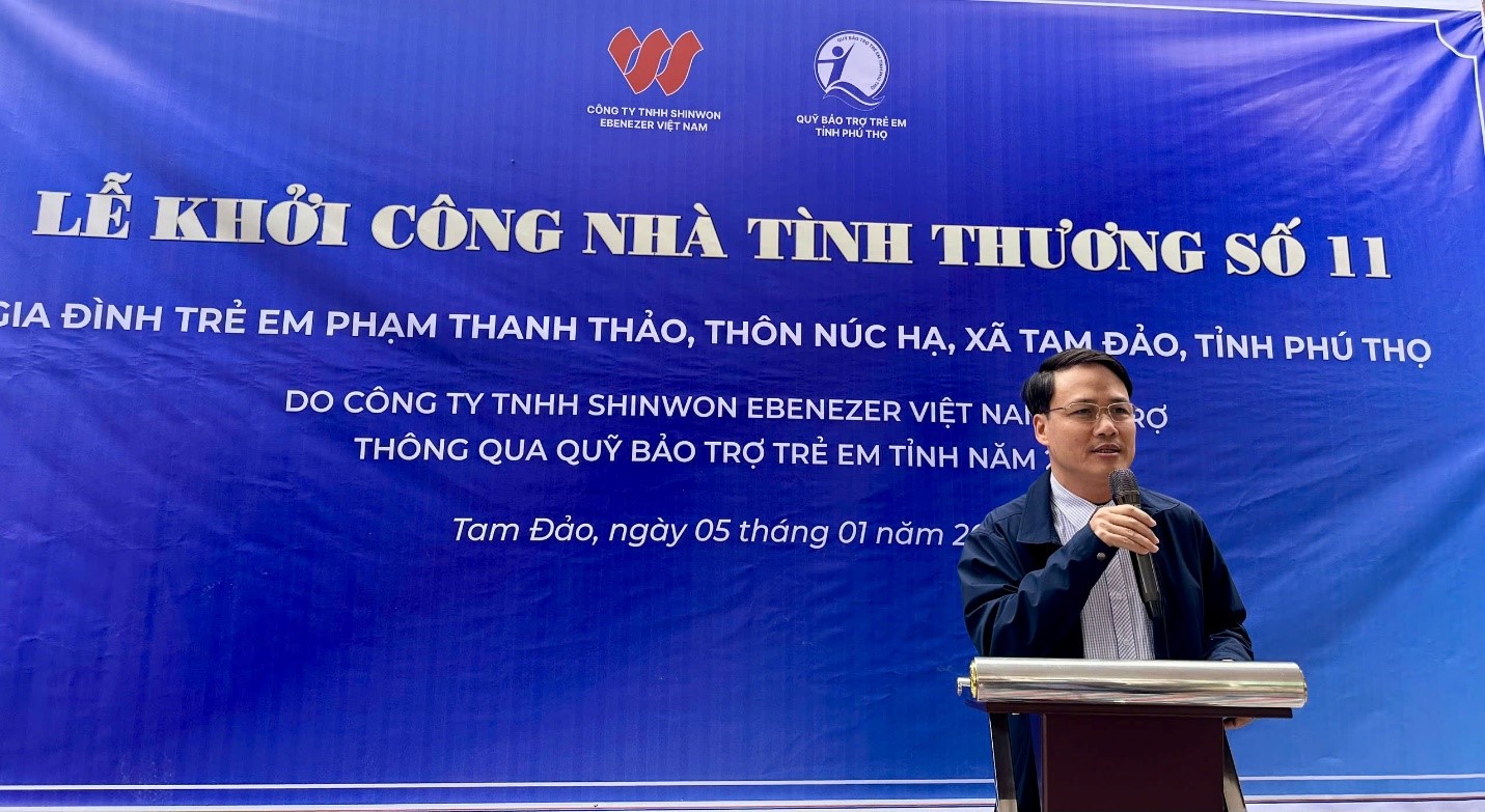 Sáng ngày 05/01/2026, Quỹ Bảo trợ trẻ em tỉnh Phú Thọ phối hợp với Công ty TNHH Shinwon Ebenezer Việt Nam và chính quyền địa phương tổ chức Lễ Khởi công xây dựng nhà tình thương cho gia đình trẻ em Phạm Thanh Thảo có hoàn cảnh khó khăn trên địa bàn xã Tam Đảo, tỉnh Phú Thọ.